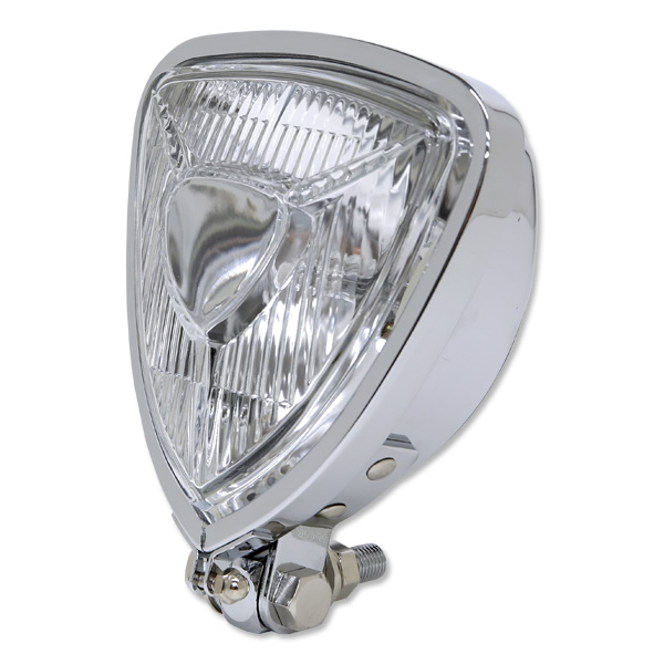 Chrome Triangle Motorcycle Headlight (Flat Back)